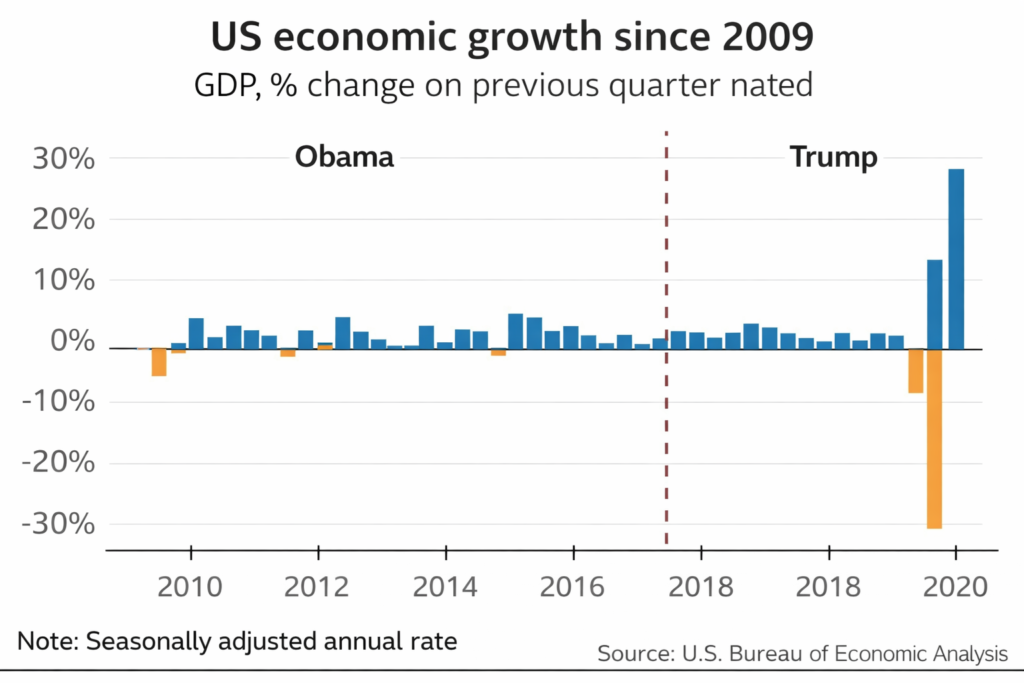 Former U.S. President Donald J. Trump posted on his social media platform. He claimed that new economic figures show fast growth in the United States.