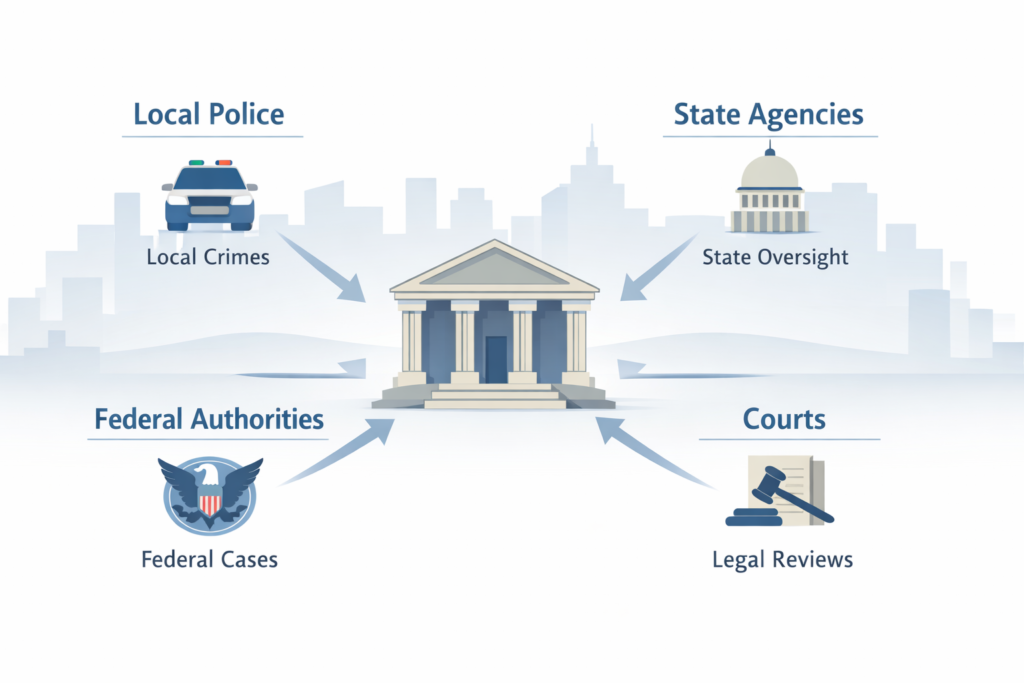 This point is essential. Many people assume there is one investigation and one final decision. In reality, several legal systems move in parallel, each with a different role, authority, and timeline.